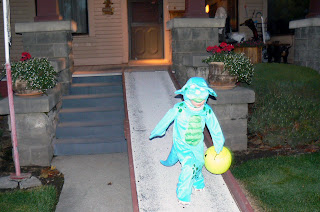 LeAnne asked us about trick or treating a week ago and has been excited ever since. Up until Yesterday the costume choices were between Lady Bug and Cinderella, then I asked her what she was going to be and she said Dinosaur. Huh? She was armament she wanted to be a dinosaur because it had a tail. So today I found her an adorable dinosaur costume at K-mart. The best parts were it was 50% off and a cozy costume! She was so in love with her costume. Just as it was starting to get dark we headed out trick or treating with a few of her friends. Charlie Brown, the beautiful butterfly and our little dino looked adorable going down the road. She quickly got the hang of saying trick or treat, thank-you and Happy Halloween. Oh how we love our dinosaur!!