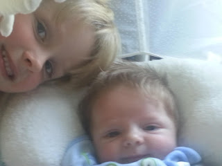 Christian weighed 11 pounds 10 ounces and was 23 inches long at his 2 month well check last week. The Dr is impressed with how alert he is. The first comment we get from people who see him is something about how much hair he has. Thinking he'll need his first hair cut before LeAnne and she had her first hair cut at 6 months. He is smiling at us all and started to coo and make other adorable noises. He is wearing 0-3 months and some 3 month clothing. I can't wait until summer gets her so I can have him just wear tee-shirt and his cute cloth diapers. Cloth diapering is going well. I have 1 adorable custom diaper on the way, an Army one. Then can't wait to order a few more custom diapers in July or August. Loving his little fluff but. After he settles down for the night he is sleeping one good 5 hour stretch at night. He and I are still sleeping downstairs. Him in his swing and me in my recliner. I have tried to move him upstairs to his bassinet or the pack and play and he wakes up. One day I will get to sleep laying down again. :-) LeAnne still really enjoys her little brother and gets a big kick out of him smiling at her. John adores his son! He is a huge help with both LeAnne and Christian! I appreciate his help with the kids a ton!